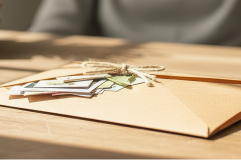 Inside each envelope is a small collection of things, chosen and assembled with care.